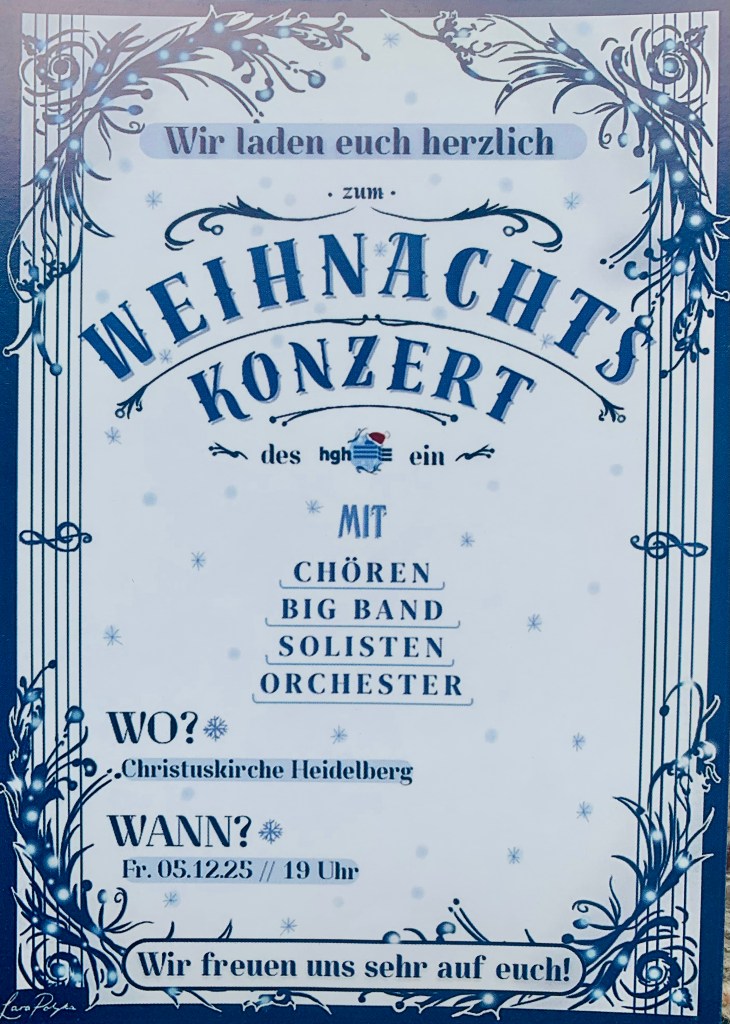 Am 05.12.2025 ist um 19 Uhr ein Weihnachtskonzert in der Christuskirche! Der Chor, die Big-Band, das Orchester und das Musical treten auf.
